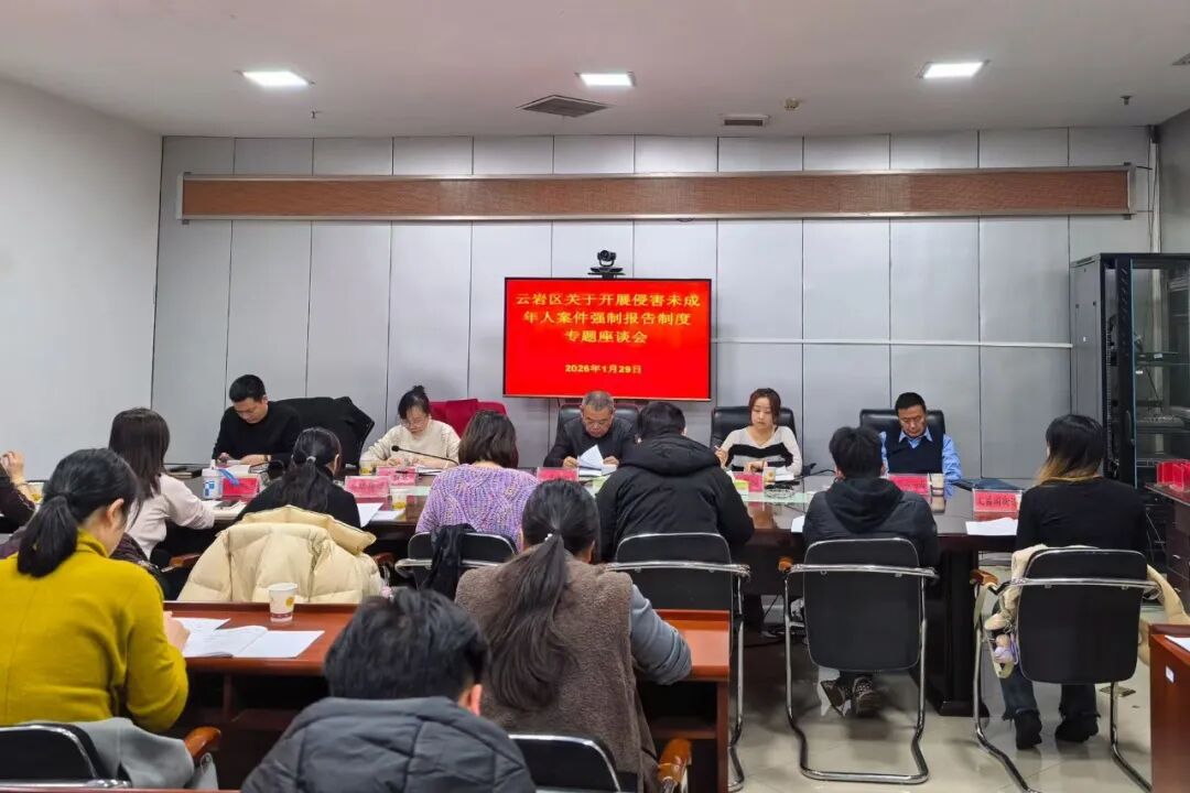 为深入推进侵害未成年人案件强制报告制度落实,持续凝聚保护合力,进一步强化部门协作,切实保障未成年人合法权益,织密未成年人保护网络。2026年1月29日,云岩区委政法委牵头召开云岩区关于侵害未成年人案件强制报告制度专题座谈会,区检察院、区公安分局、区卫健局、区教育局、区民政局、区妇联、部分街道(镇)参加。